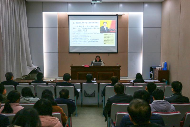 魏群教授圍繞黨的十九屆四中全會召開的時代背景、全會《決定》的體系內(nèi)容、全會精神的貫徹落實三個方面,深入闡釋了黨的十九屆四中全會的重大意義,闡述了中國特色社會主義制度和國家治理體系的顯著優(yōu)勢,對全會《決定》提出的總體要求、總體目標(biāo)和重點任務(wù)進(jìn)行了系統(tǒng)解讀,對如何貫徹落實黨的十九屆四中全會精神進(jìn)行了具體指導(dǎo)。宣講報告聚焦重點和關(guān)鍵,內(nèi)涵豐富、系統(tǒng)全面,深入淺出、鮮活生動、論述精辟,參加宣講報告會的黨員同志深受啟迪,倍受教育。